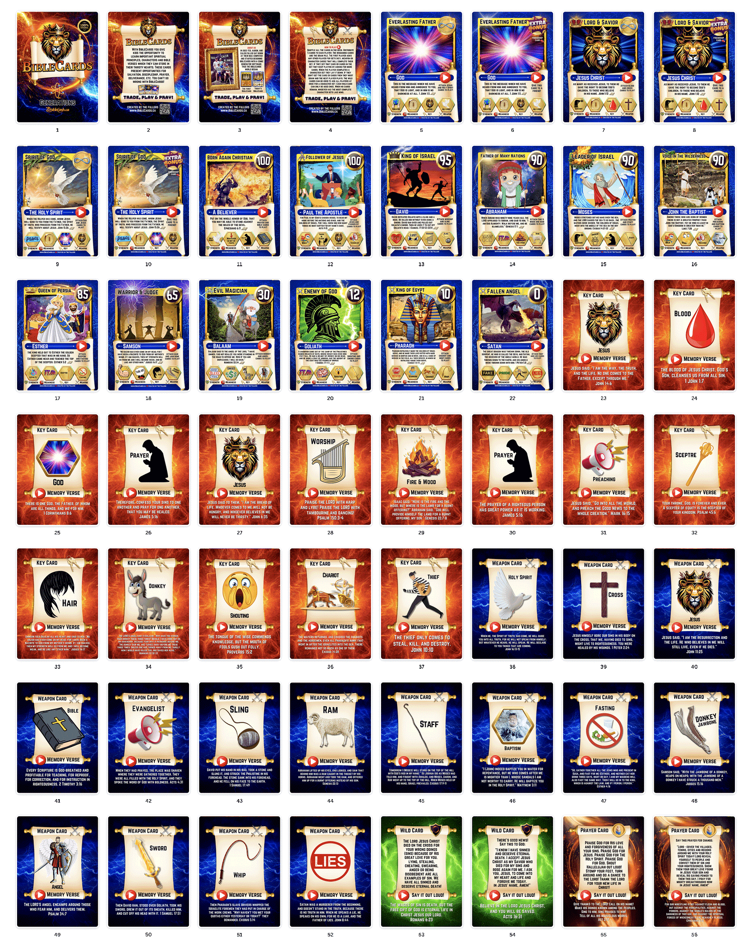 The Generations Edition takes your favorite Bible characters and attaches them to their strongest key and weapon cards. There are a total of 55 BibleCards in this set.